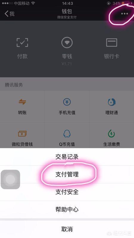 2、点击右上角的“...”,然后选择“支付管理”,如下图。