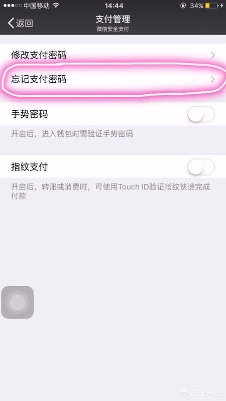 3、点击“忘记支付密码”,如下图。