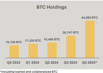 公司进行了比特币的分散化储存,包括将部分比特币借出和用作抵押。这样可以优化资本使用效率,提高资金流动性。据其 2024 年报告,约有 10,374 个比特币借给第三方或用作抵押。